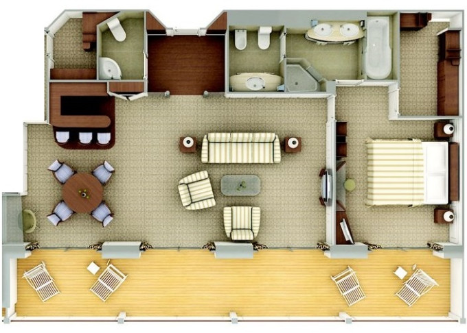 SL - Silver Suite 61-65 m² (vrátane verandy). 7. paluba. Max 3 osoby. 30 900 € 10 300 € za osobu