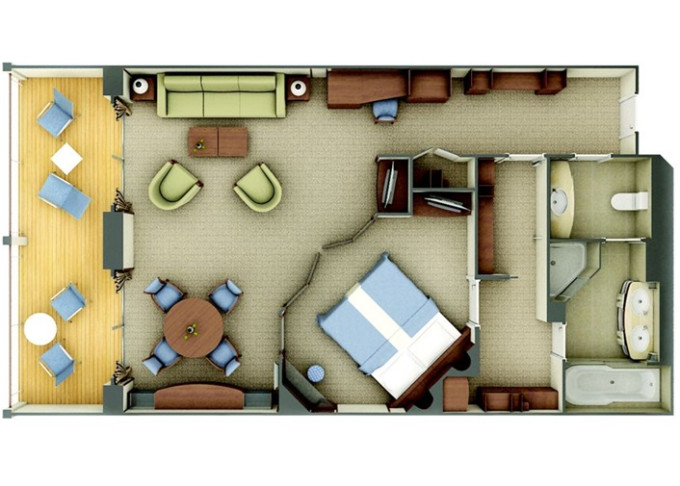 SV - Superior Veranda Suite 32 m² (vrátane balkóna 6 m²). 5.až 8. paluba. Max 3 osoby. 12 800 € 6 400 € za osobu