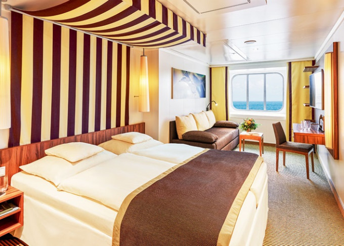 MA - Vonkajšia kajuta PREMIUM 22-23 m². Neotvárateľné okno. 4. paluba. Max 3 osoby. Cenový model Premium. 4 510 € 2 255 € za osobu