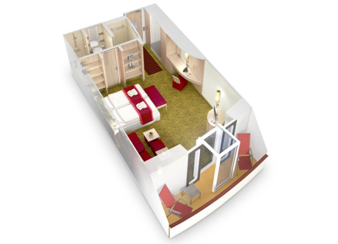 BA - Kajuta s balkónom PREMIUM od 17,5 m² / balkón od 3 m². Max 4 osoby. Cenový model Premium. 5 990 € 2 995 € za osobu
